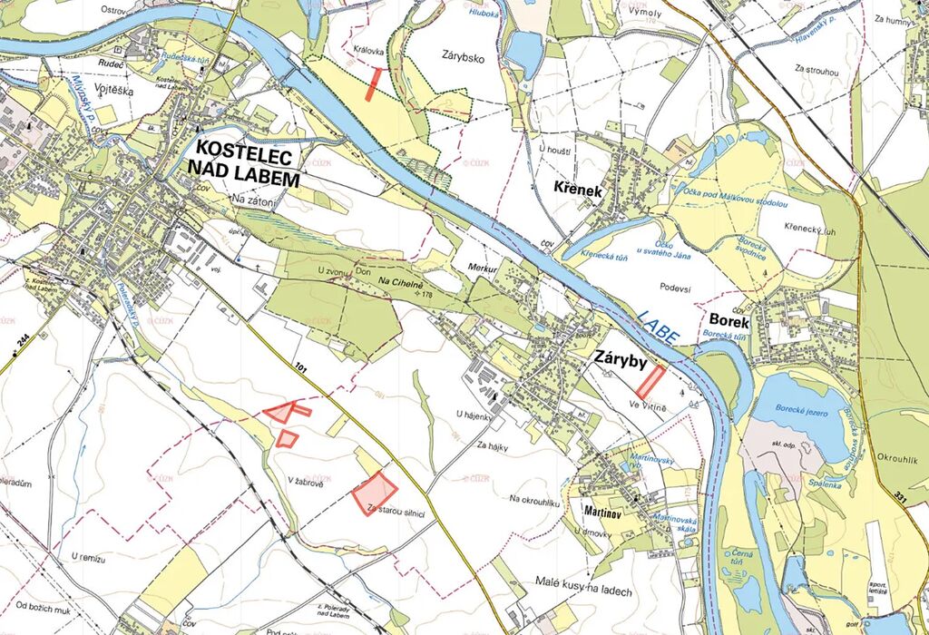 V katastrálním území Kostelec nad Labem (okres Mělník) jsou pozemky zapsány na LV 1112 a jedná se o parcelu č. 1400/32 s druhem trvalý travní porost a parcelu č. 1399/23 s druhem orná půda.