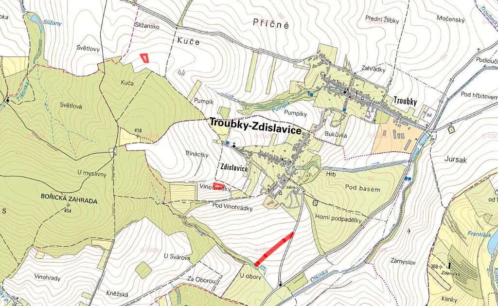 Nabízíme k prodeji vlastnictví na souboru pozemků v katastrálních územích Zdislavice a Troubky, okres Kroměříž. Pozemky mají výměru 13 449 m² a celková výměra prodávaného činí 6 724 m².