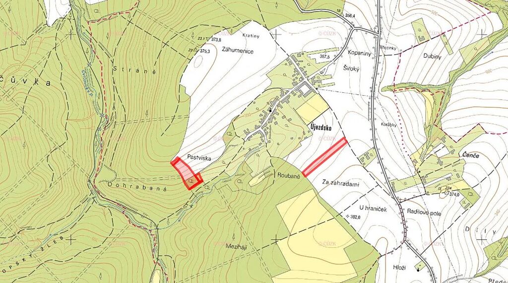 Nabízím k prodeji soubor pozemků ve výlučném vlastnictví o celkové výměře 16 519 m² v katastrálním území Újezdsko, obec Kostelany, okres Kroměříž. Pozemky jsou zapsány na listu vlastnictví č. 350 a tvoří je 5 parcel.