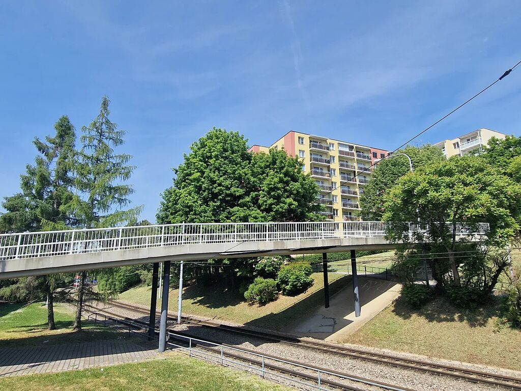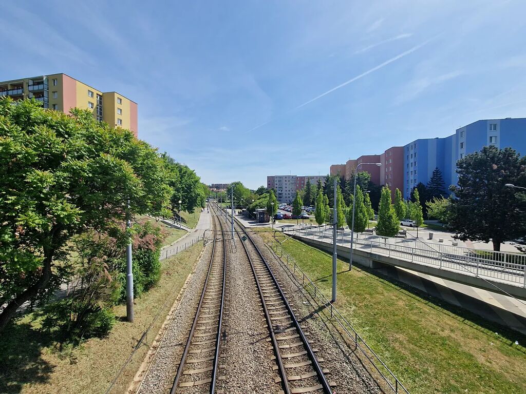 Velmi vkusné sídliště na okraji města Brna, má perfektní dostupnost jak automobilem, tak městskou hromadnou dopravou. V okolí Mnoho zeleně, za domem dětské hřiště, volné parkování kolem bytových bloků bez městských zón. Za domem malé obchodní centrum (Billa). Tramvajová zastávka: Švermova.