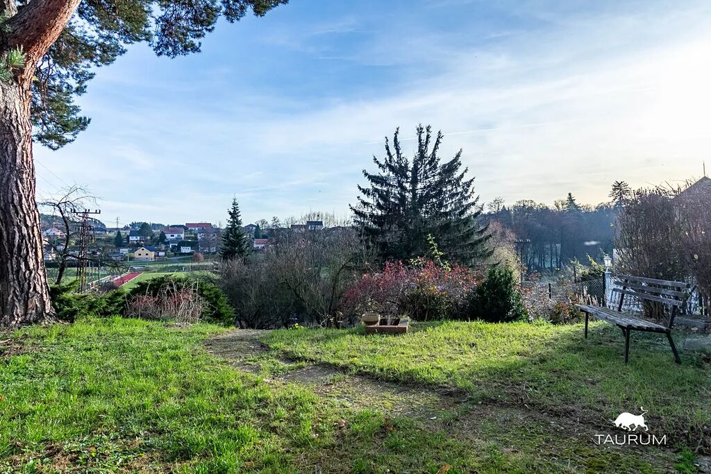 Z domu je krásný výhled do údolí situovaný na jih. Zahrada o celkové výměře 1.250m² je svažitá, horní část je oplocena a udržována, spodní část čeká na své budoucí využití.