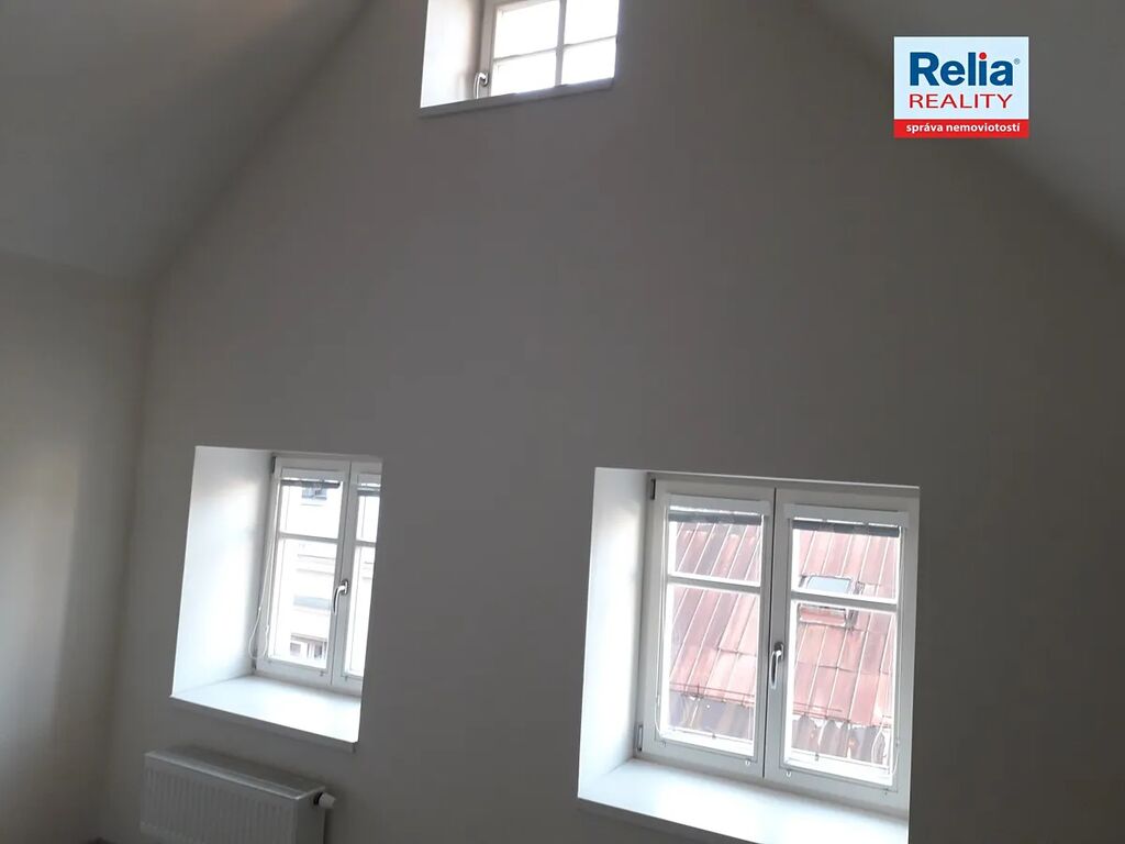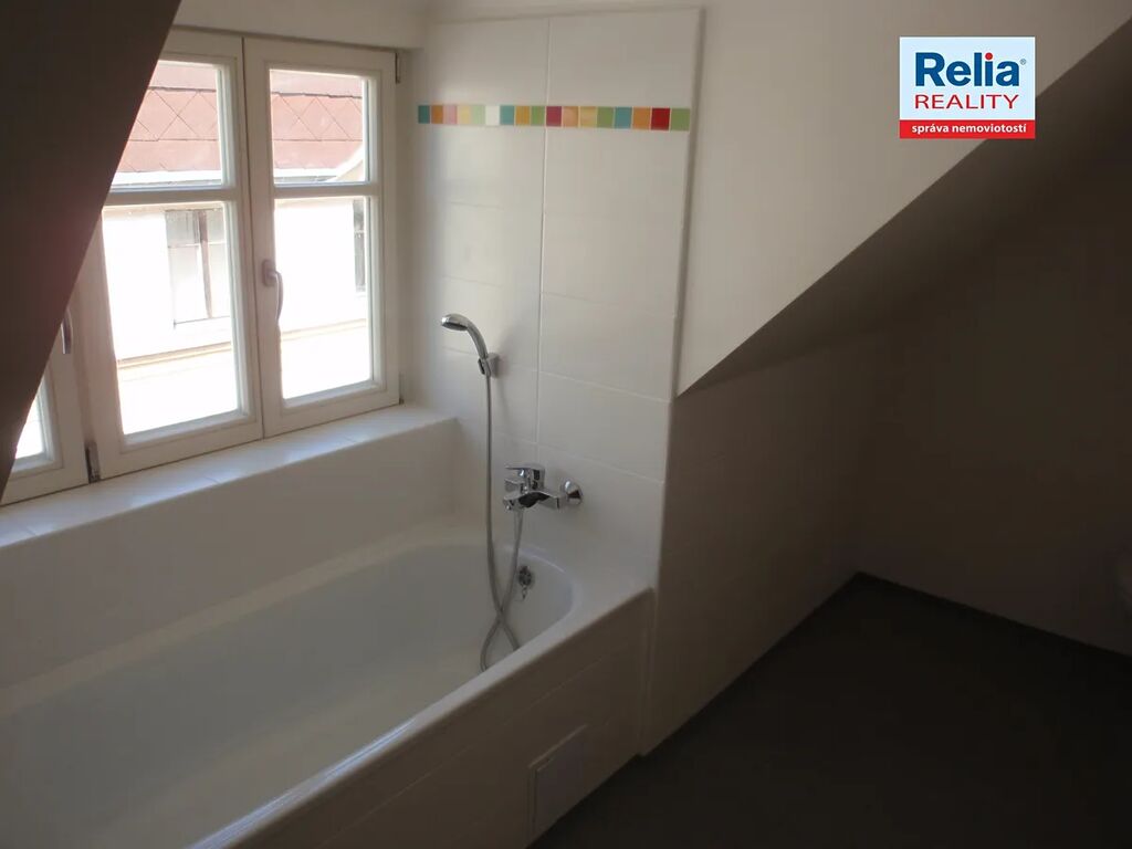 Nabízíme k pronájmu atypický byt v nájemním cihlovém domě v centru Liberce u Nerudova náměstí. Byt má charakteristiky podkrovního bytu s částečně zkosenými stěnami, ve štítu domu je ponechán k využití prostor přístupný po dřevěných schůdcích. Dům prošel před časem kompletní rekonstrukcí včetně výměny oken, dveří, opravy fasády apod. Nabízený byt má světlou kuchyňskou linku, dveře a podlahy v přírodních barvách, bíle vymalováno, okna jsou doplněna žaluziemi. Kuchyňská linka je vybavena elektrickým sporákem a digestoří. Atypicky je řešená i koupelna s oknem, vybavená vanou, umyvadlem a WC, připraveno připojení na pračku. V domě je vlastní moderní plynová kotelna, nájemníci mají možnost si sami regulovat teplotu v bytě pomocí prostorového termostatu. K nájmu se hradí záloha na služby, vlastní smlouva na odběr elektřiny. Byt je určen max. pro 1 -2 osoby, bez zvířat.
