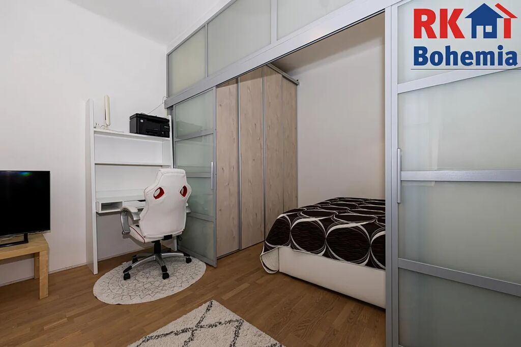 Velkým benefitem jsou moderní posuvné hliníkové příčky, které elegantně rozdělují prostor hlavního obytného pokoje a zároveň působí vzdušně a čistě. Ve stejném provedení jsou i dveře v obou místnostech, což vytváří velmi sjednocený a moderní vzhled interiéru. Byt má nové interiérové dveře včetně bezpečnostních vstupních, Next v jedné z nejvyšších protipožárních tříd. Nová dřevěná podlaha v obou místnostech i v hlavní chodbě.