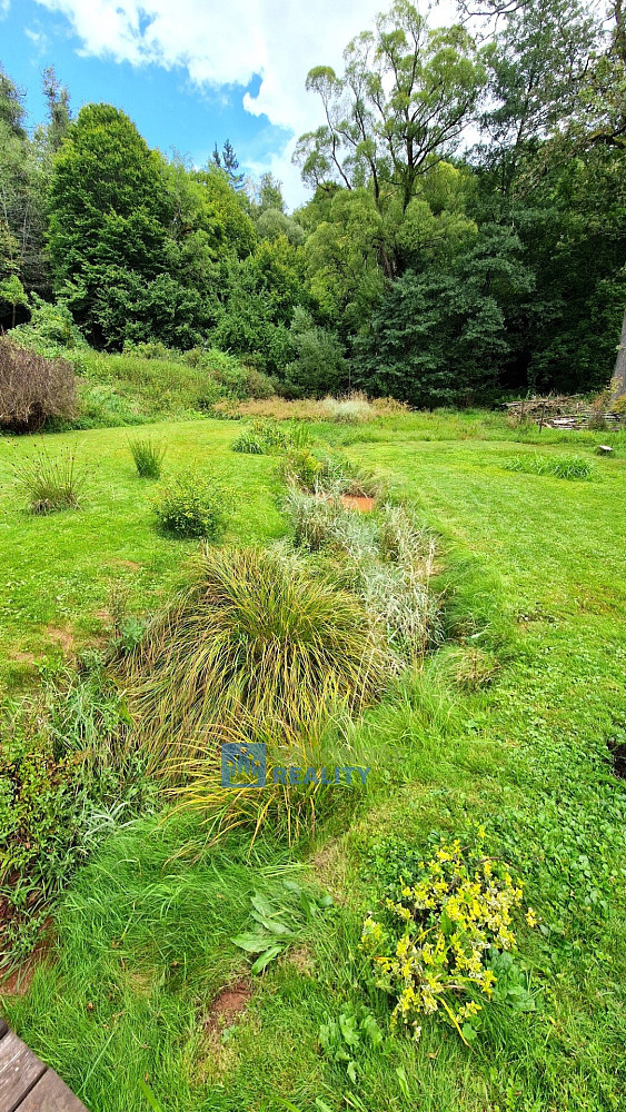 Celková podlahová plocha domu činí přibližně 265 m². K domu náleží okrasná zahrada o výměře cca 1.600 m², kterou protéká tichý potok. Jeho zurčení připomíná, že příroda je tu součástí každého dne. Na zahradu navazuje lesní pozemek o rozloze 1.589 m² – místo, kam si můžete jít jen tak posedět, vnímat vůni jehličí a šumění větví.
