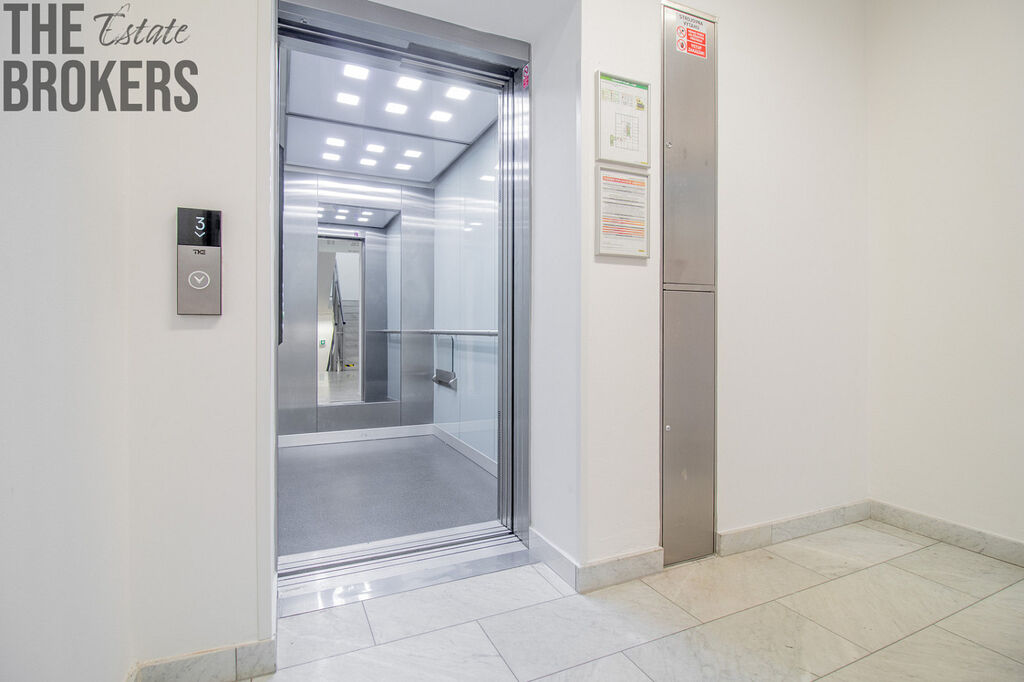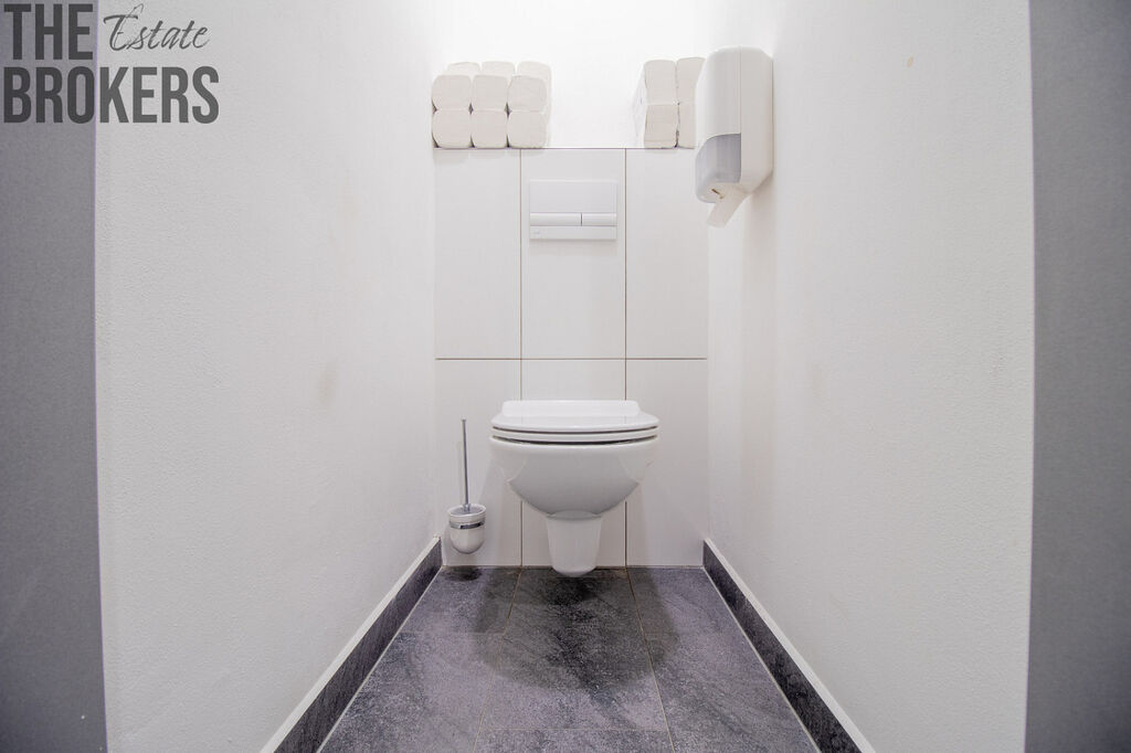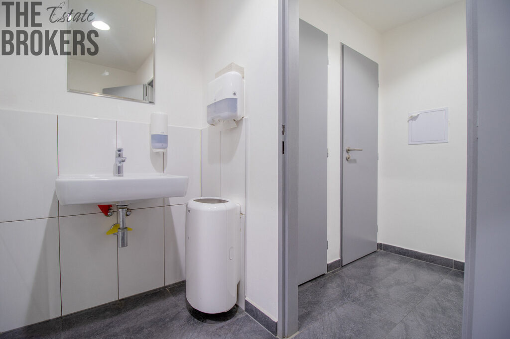 Kancelář o 59,15 m² je příjemně prosvětlená, vybavená kobercem a klimatizací a má plně bezbariérový přístup včetně výtahu. Na patře jsou k dispozici dámské i pánské toalety, ve vrchním patře navíc společná kuchyňka.