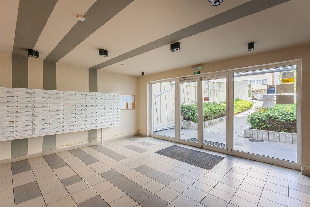 Nabízíme Vám k pronájmu praktický byt 1kk o výměře 34 m² s prostornou zasklenou lodžií (8 m²), v cihlovém bytovém domě v ulici V Dolině, Praha 10 - Michle. Byt je zařízený kuchyňskou linkou se spotřebiči (trouba, sklokeramická deska, myčka, lednice). Koupelna (4 m²) se sprchovým koutem, pračkou, umyvadlem a toaletou. Výhodou je blízká dostupnost MHD, centra města a kompletní síť obchodů a služeb v místě.
