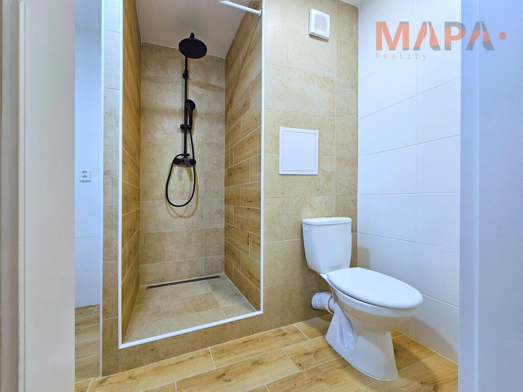 Součástí tohoto hezkého bytu po rekonstrukci je zděná koupelna se sprchovým koutem, WC a kuchyňská linka.