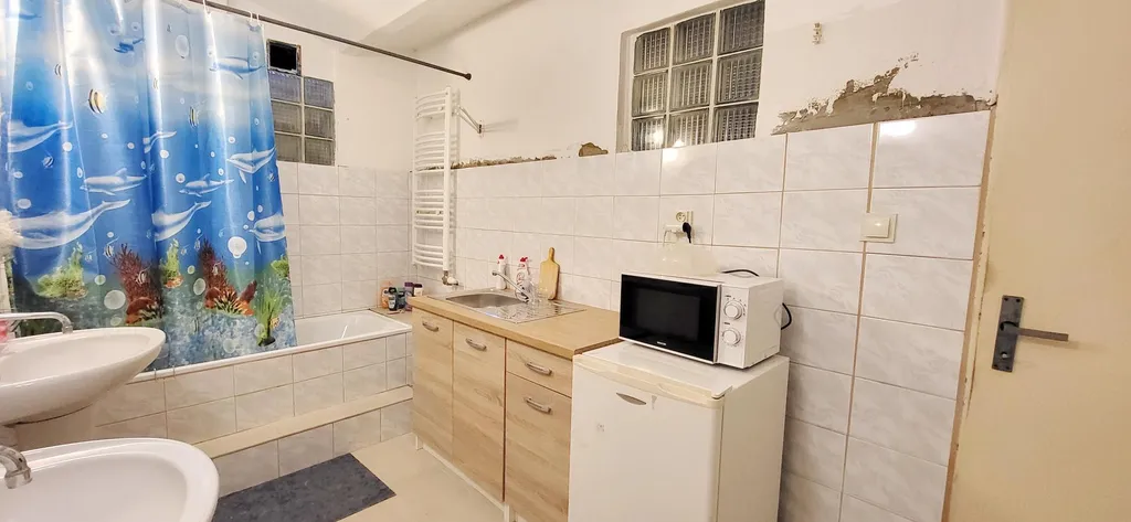 Pokoje mají k dispozici společné sociální zázemí na podlaží prostorná koupelna s vanou, dvěma umyvadly a WC, dále je zde malý kuchyňský kout, vybavený ledničkou a mikrovlnnou troubou. Koupelna je po rekonstrukci.
