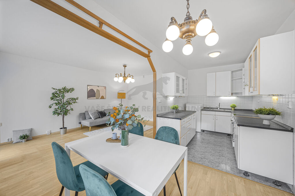 Nabízíme byt původní 3+1 nyní otevřené jako 3+kk s velkým balkónem a orientací do klidného vnitrobloku s 76,1m2 plochy + balkón 7m2 + druhým sklepem