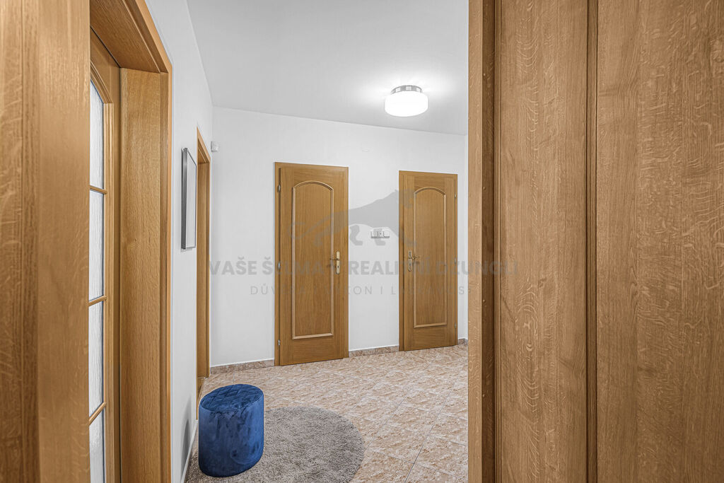Dále: bezpečnostní dveře, optický internet, instalovaný jablotron (deaktivovaný), podlahy plovoucí + dlažba, ústřední topení