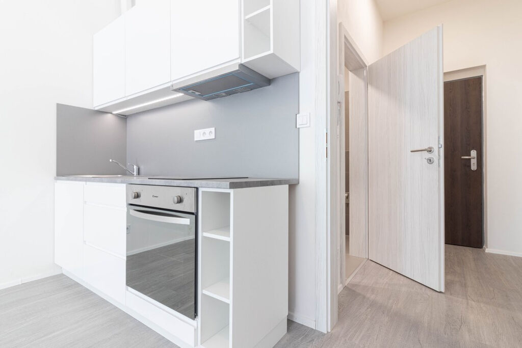 Byt se nabízí částečně vybavený. Kuchyně disponuje elektrickou troubou, sporákem a digestoří. Obývací část je nezařízená. V krásné nové koupelně najdeme sprchový kout, umyvadlo a toaletu. Ve vstupní chodbě je šatní stěna s botníkem.