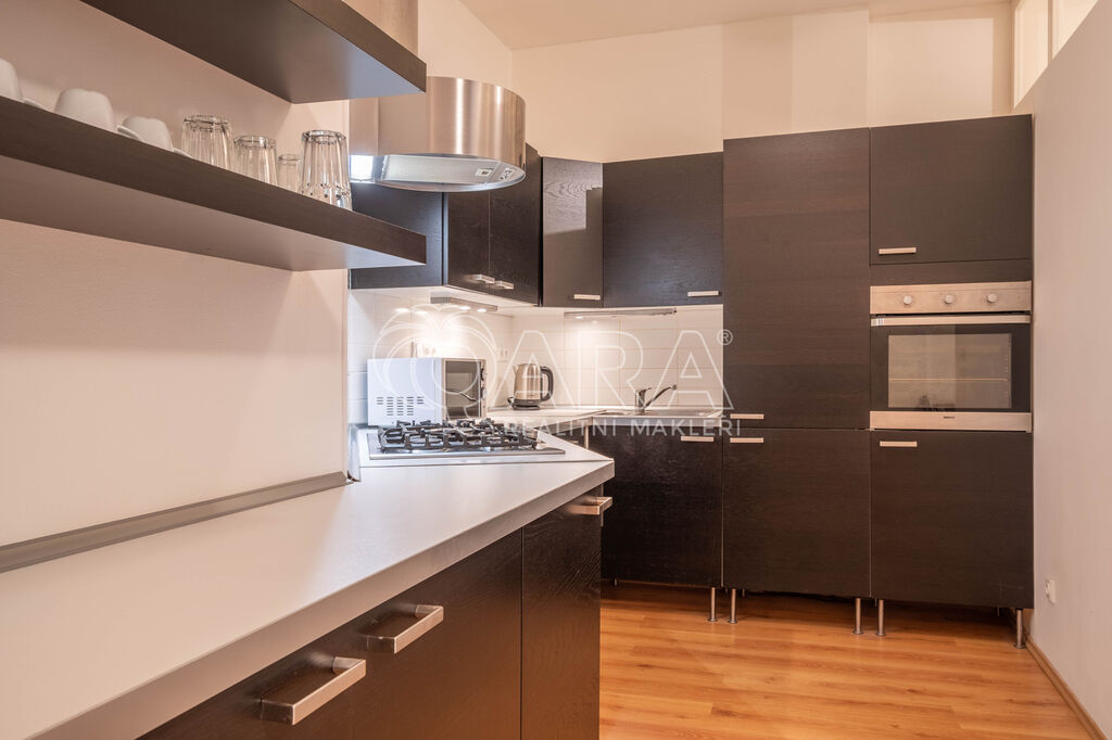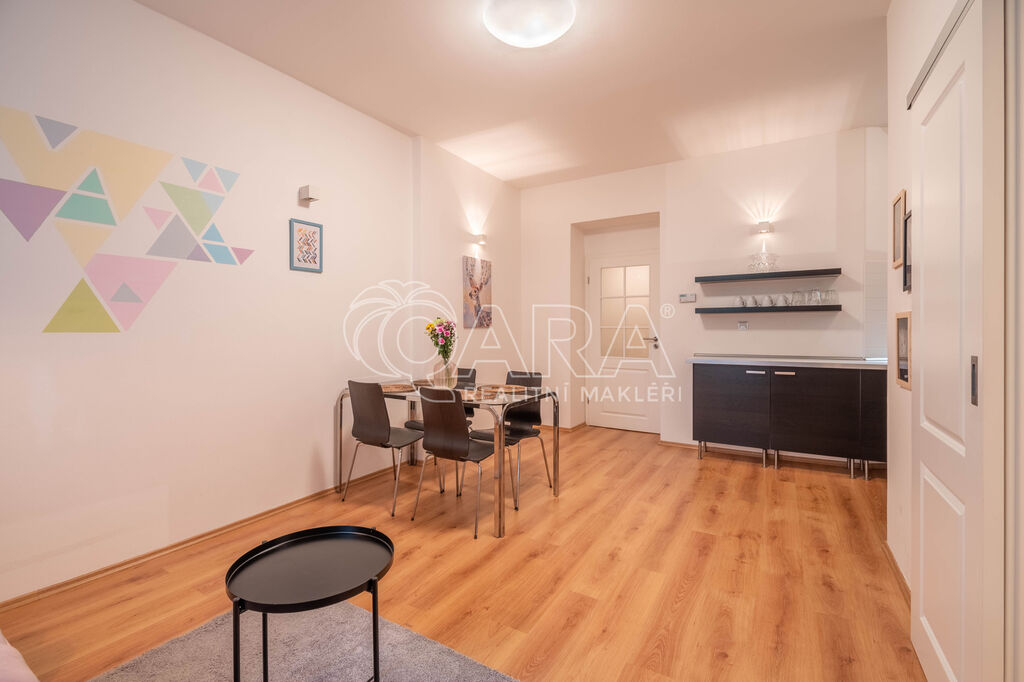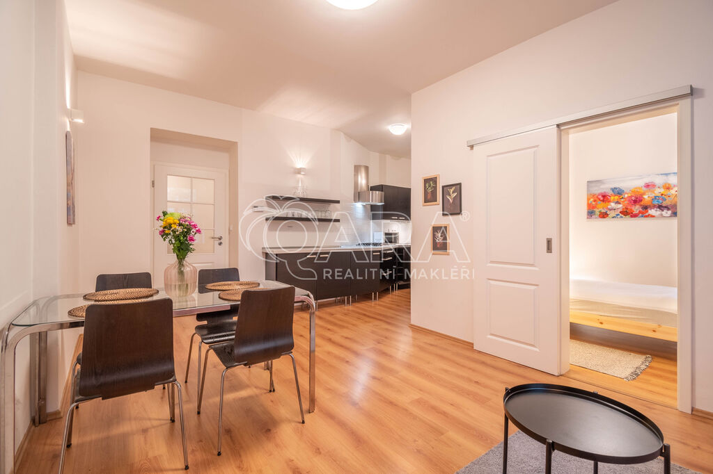 Dovoluji si Vám nabídnout světlý a prostorově velmi dobře řešený byt o dispozici 2+KK ve velmi žádané lokalitě Vinohrad. Byt se nachází v prvním nadzemním podlaží s výhledem do zeleného dvora. Skládá se z hlavní obývací místnosti spojené s kuchyňským a jídelním koutem, dále z ložnice, komory, koupelny s toaletou a další samostatné toalety. Byt je kompletně vybaven včetně všech spotřebičů (sporák, trouba, mikrovlná trouba, pračka, sučička). Bez nadsázky lze říct, že si přinesete kufry a můžete bydlet.