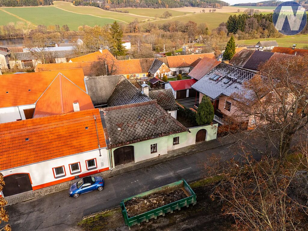 Oba objekty jsou situované v klidném prostředí menší obce s dobrou dostupností do Prachatic i do šumavského okolí. Výhodou je právě uzavřený dvůr, který funguje jako bezpečné zázemí pro děti, místo pro posezení či praktický prostor pro dílnu a další využití; zahrada pak celý celek příjemně doplňuje. Voda i kanalizace jsou vedeny v ulici přímo před domem, takže napojení je dobře dostupné.