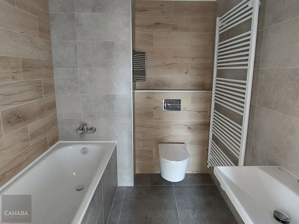 Tento příjemný a moderní byt se nachází v přízemí novostavby bytového domu. Nabízí světlý obývací pokoj s kuchyňským koutem s přímým vstupem na terasu a do zahrady, ložnici 11,5 m², dostatek úložného prostoru zajišťuje prostorná chodba. Koupelna je s vanou a toaletou.