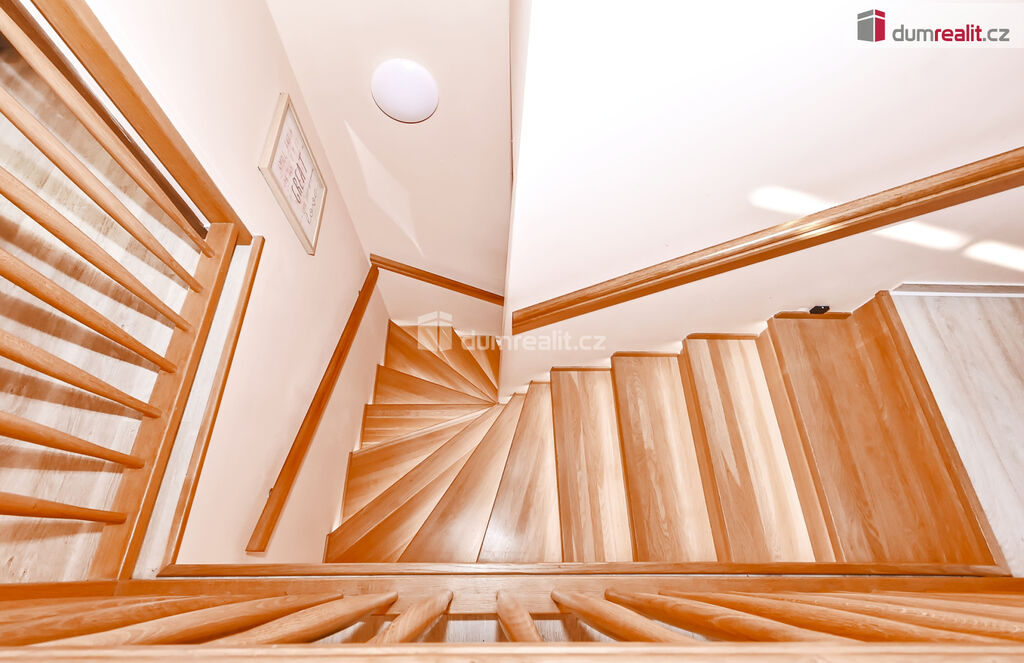 Prodej rodinného domu o dispozici 4+kk, s krásnou zahradním architektem navrženou zahradou, na které se nachází jak zastřešené posezení pro větší rodinu, tak okrasnou zahradu, která je pohledově z obývacího pokoje. Dále dvě parkovací stání za dálkově ovládanými vraty, tak i za domem dřevěný domek pro zahradní nábytek a potřeby na zahradu. Dům je velmi dobře architektonicky řešený, s mnoha vynikajícími detaily, které tento dům dělá velmi osobní a unikátní. V přízemí domu se nachází předsíň, ze které se jde dále do obývacího poje s kuchyňským koutem, dále do koupelny se sprchovým koutem a WC, a technické místnosti ve které se nachází plynový kotel, pračka se sušičkou a dostatkem prostoru pro úklidové prostředky. Po schodech, které neprochází žádnou místností, tudíž jsou nerušící, mají zajímavé podsvětlení, se jde do patra, kde se nachází velká koupelna s vanou a WC, prostorná šatna, kterou jistě oceníte, dále tři samostatné pokoje. Celý dům působí vzdušně a prostorně, i díky zajímavým osvětlením, členěním a praktičností. Orientace domu je na jih, západ a sever. Obývací pokoj s kuchyňským koutem a dále dva pokoje v patře jsou na jih, jeden pokoj v patře je na západ a koupelny a technická místnost jsou na sever. Hezký je výhled z obývacího pokoje na krásnou udržovanou zahradu, se zabudovanou automatickou závlahou. Tento dům Vám opravdu doporučujeme, je velmi praktický a dělaný se vkusem.