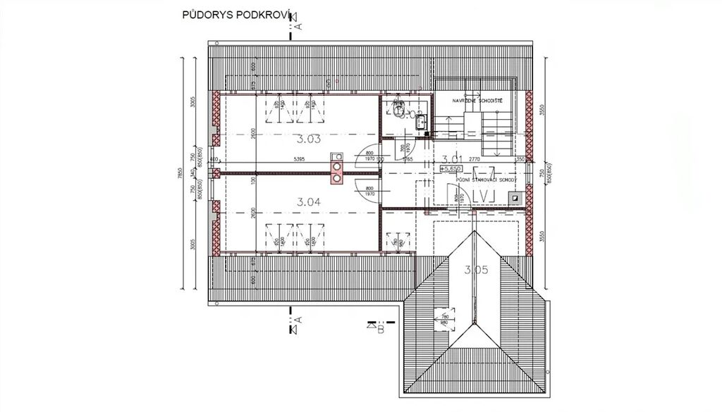 Podkroví: další pokoje s možností rozšíření ubytovací kapacity.