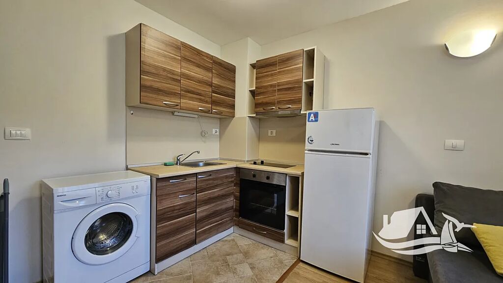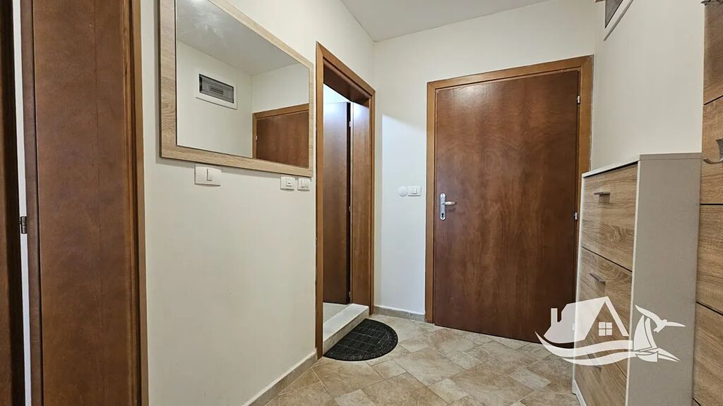 Tento elegantní apartmán o velikosti 53,7 m², umístěný v přízemí šestipodlažní budovy s výtahem, nabízí promyšlený prostor s důrazem na světlo a pohodlí. Dispozice kombinuje vzdušnost a praktičnost: světlý obývací pokoj s kuchyňským koutem, klidnou ložnici, koupelnu a balkon orientovaný do zeleně. Působí jako místo, kde se člověk snadno usadí – po dni stráveném na pláži, večerní procházce nebo poklidném návratu z města.