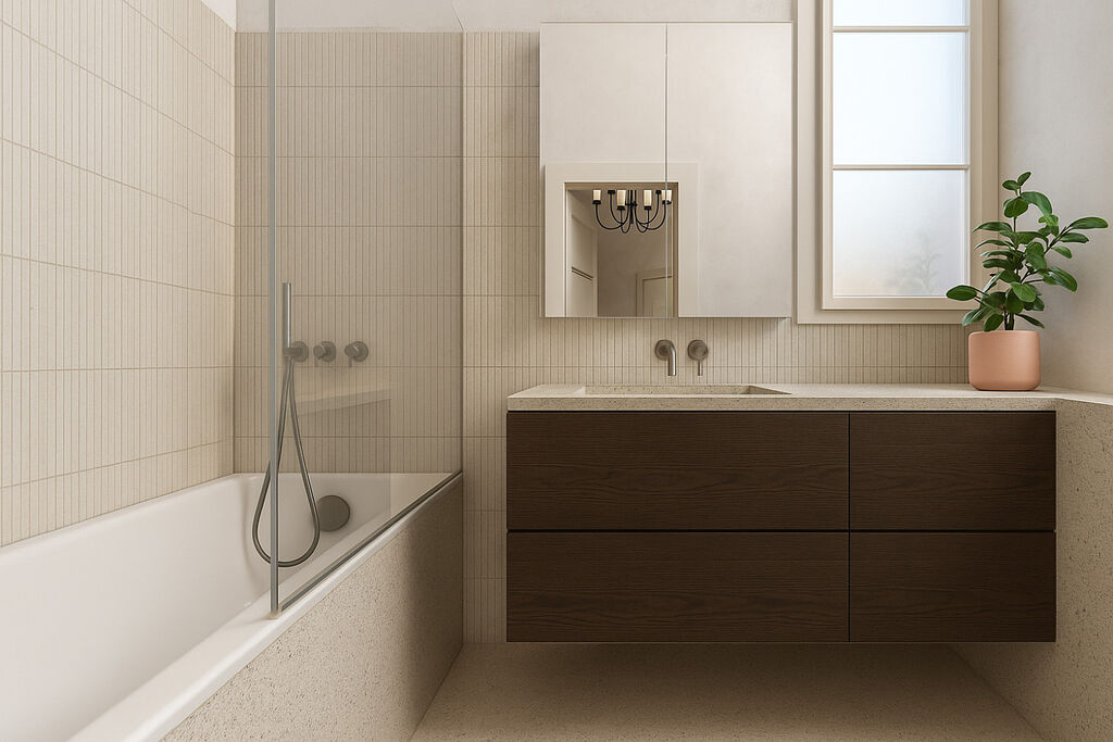 Byt bude dokončen ve stavu fitout – tedy plně připravený k nastěhování: nové koupelny, dubové parketové podlahy, prvotřídní zařizovací předměty. Uvedená cena se vztahuje k dokončené jednotce.