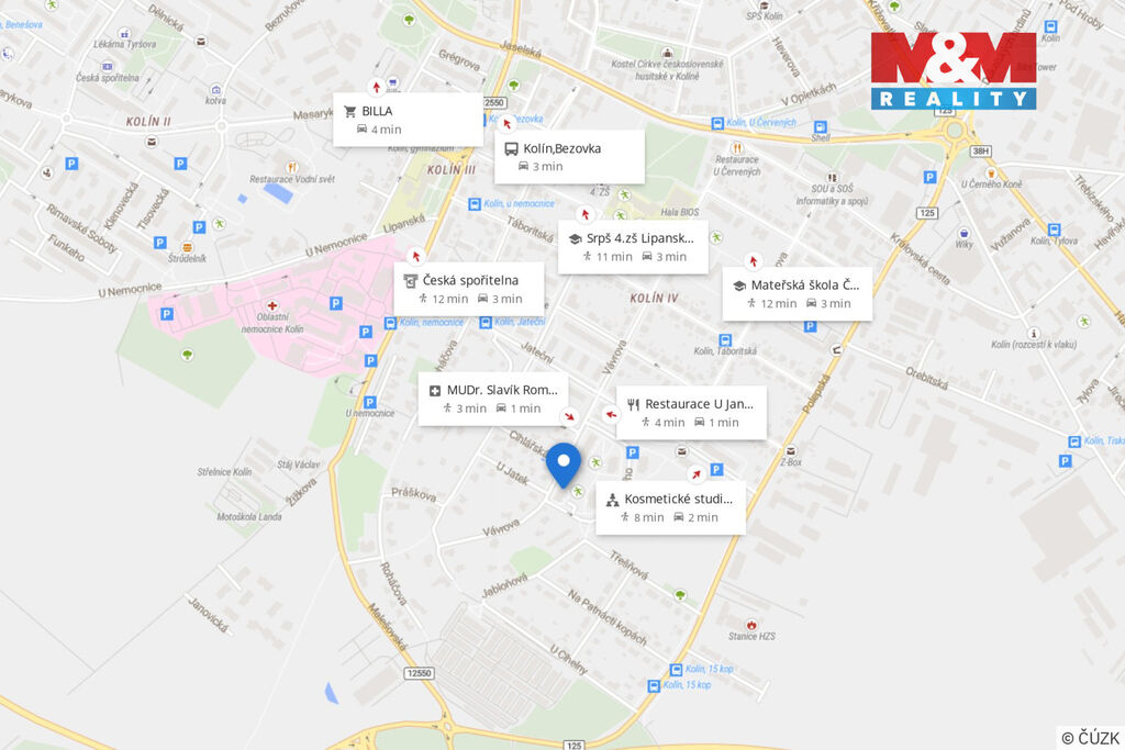Dům se nachází na sídlišti v Kolíně. V okolí je veškerá občanská vybavenost v docházkové vzdálenosti – obchody, školy, školky, MHD i zdravotní služby.