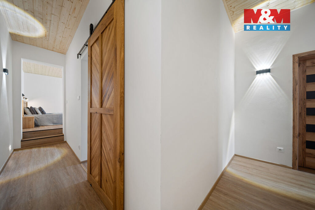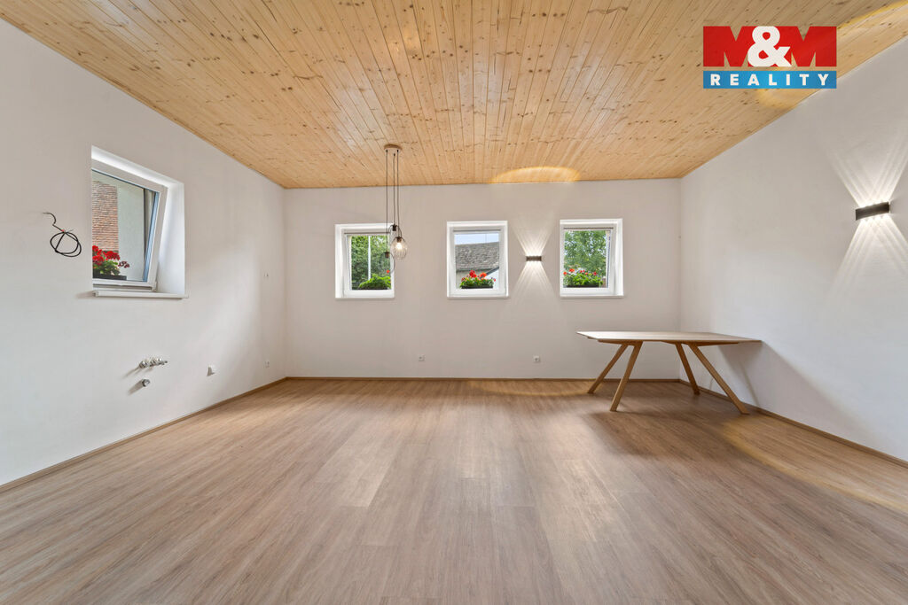 Dispozice: 3+kk, 104 m² + 2. NP připravených k dokončení (rozvody vody, kanalizace, elektřiny, internetu a TV již vyvedeny).