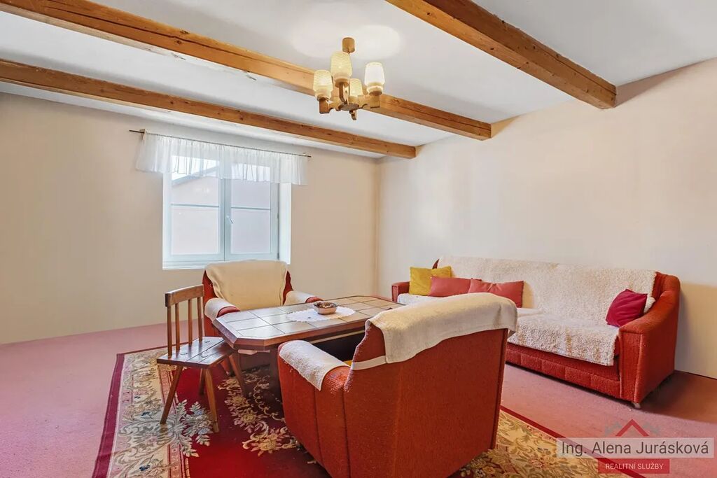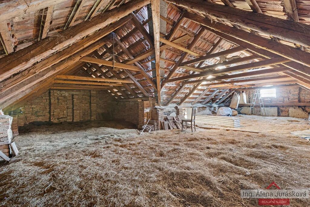 Dům se nachází na pozemku o celkové výměře 403 m2 a zastavěná plocha domu činí přibližně 138 m2. Díky své současné dispozici i možnostem rozšíření je vhodná jak k okamžitému bydlení, tak k rekonstrukci a přestavbě na plnohodnotný rodinný dům. Dům má v tuto chvíli dispozici 2+kk o velikosti 60 m2. Nad přízemím se nachází půda o rozloze 48 m2 vhodná k vybudování dalšího obytného patra. Na dům navazuje také stodola o 36 m2, ze které lze vytvořit další pokoje či jiné zázemí podle vlastních představ.