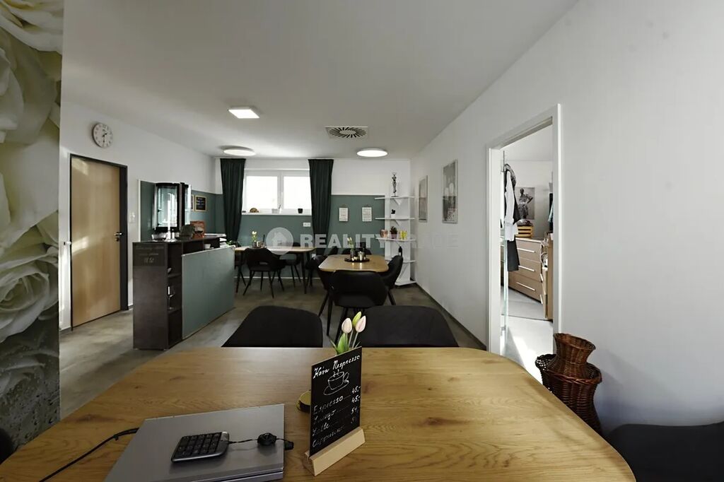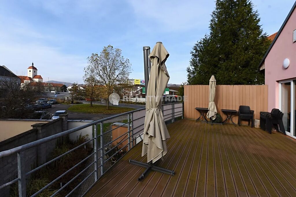 Pronájem komerčního prostoru 197,4 m2 s velkou terasou s výhledem na hrad v 1. patře komerčního a bytového domu v centru okresního města Strakonice vhodného pro kavárnu, obchod, služby či kanceláře. Nabízíme pronájem komerčního, prostoru o celkové rozloze 197,4 m2 (terasa 37,94 m2, vnitřní prostory 159,46 m2) v 1. patře (2NP) komerčního a bytového domu v centru okresního města Strakonice. Prostor se skládá z bývalé prodejny textilu (dříve kavárna), kuchyně, skladu, kanceláře, chodby se vstupem do úklidové místnosti a toalet pro muže a ženy. Další místnost, která sloužila pro masáže má samostatnou sprchu a toaletu. Prostorná terasa s výhledem na strakonický hrad. Půdorys prostor včetně výměr je k dispozici v záložce "SOUBORY" ve formátu .pdf. Přístup je možný po schodech přes terasu z veřejného parkoviště nebo druhým vchodem přes samostatné schodiště ze dvora domu. Vhodné využití pro kavárnu, obchod, kancelář či služby. Jedná se o velmi pěkný prostor, v perfektním technickém stavu po rekonstrukci. Budova je nově zateplená, plastová okna a dveře. Podlahy - keramická dlažba, plovoucí podlaha, zátěžový koberec. Centrální vytápění (Teplárna Strakonice), spotřeba elektřiny je měřena samostatným elektroměrem. Teplo a elektřina bude přepsána na budoucího nájemce. Spotřeba vody se měří samostatným vodoměrem a je rozúčtována 1x ročně dle skutečné spotřeby. Voda je ohřívána elektrickým bojlerem. V ceně služeb není započteno připojení k internetu a poplatek za svoz odpadu (nájemce hradí přímo dodavateli). V současné době je v objektu nehtové studio, kadeřnictví, pedikura, prodejna e-cigaret, prodejna dámského prádla a ČSOB pojišťovna. V těsné blízkosti objektu se nachází dvě velká obchodní centra (OC Maxim a OD Prior) a dostatek parkovacích ploch.