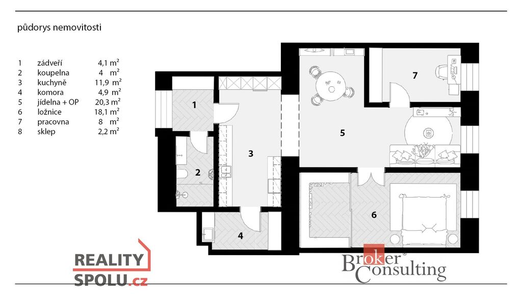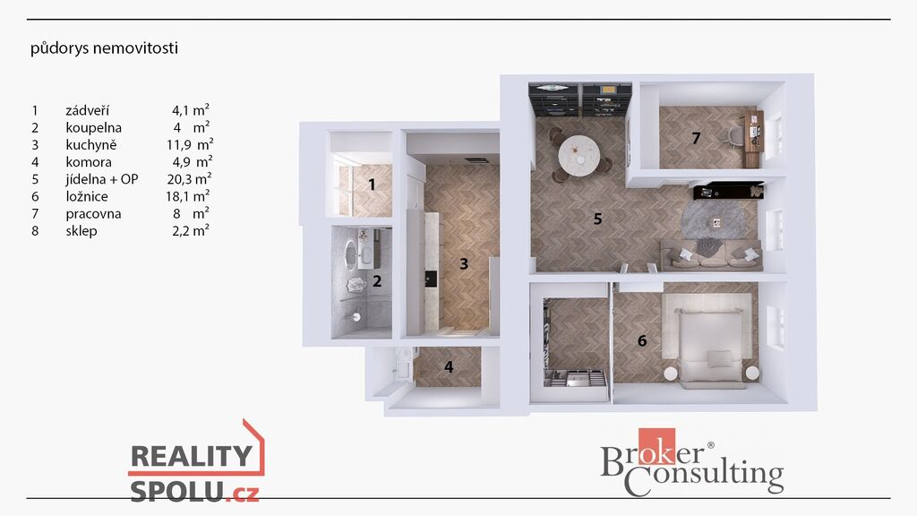 Tento byt je o dispozici 3+1 a má celkovou plochu 73,5 m2, z toho sklep má 2,2 m2. Je umístěn ve čtvrtém nadzemním podlaží historického cihlového domu. Každý byt projde pečlivou rekonstrukcí, díky níž získáte moderní, komfortní bydlení s důrazem na detail – od prémiových podlah, přes designové dveře až po kvalitní koupelny. Ve všech bytech naleznete obývací pokoje s kuchyňským koutem, samostatné ložnice a stylové koupelny. Některé byty nabízí pavlače, balkony, terasy či dvorek.