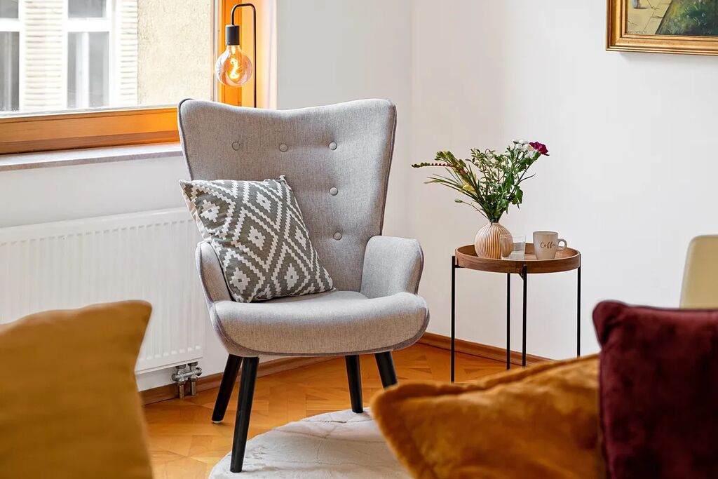 • krbová kamna, která dodávají bytu jedinečnou atmosféru.