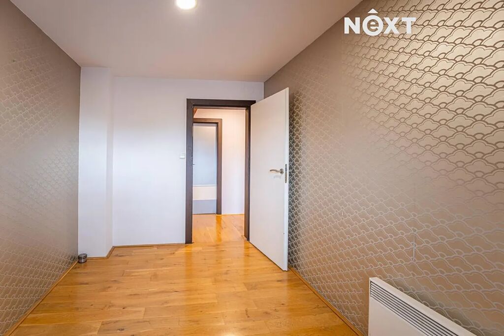 Byt s podlahovou plochou 83 m2 se nachází v 3.NP (nejvyšším patře) cihlového domu v klidné lokalitě blízko centra města. Chodba, v níž se nachází vestavěná skříň se zrcadlem, je průchozí do všech místností. V koupelně najdete sprchový kout i vanu, umyvadlovou skříňku se zrcadlem a prostor na pračku. WC je zvlášť. Část obývacího pokoje tvoří na míru vyrobená kuchyňská linka s vestavěnými spotřebiči jako je varná deska, elektrická trouba a myčka. Z něj vystoupáte do patýrka nebo vyjdete na balkon.