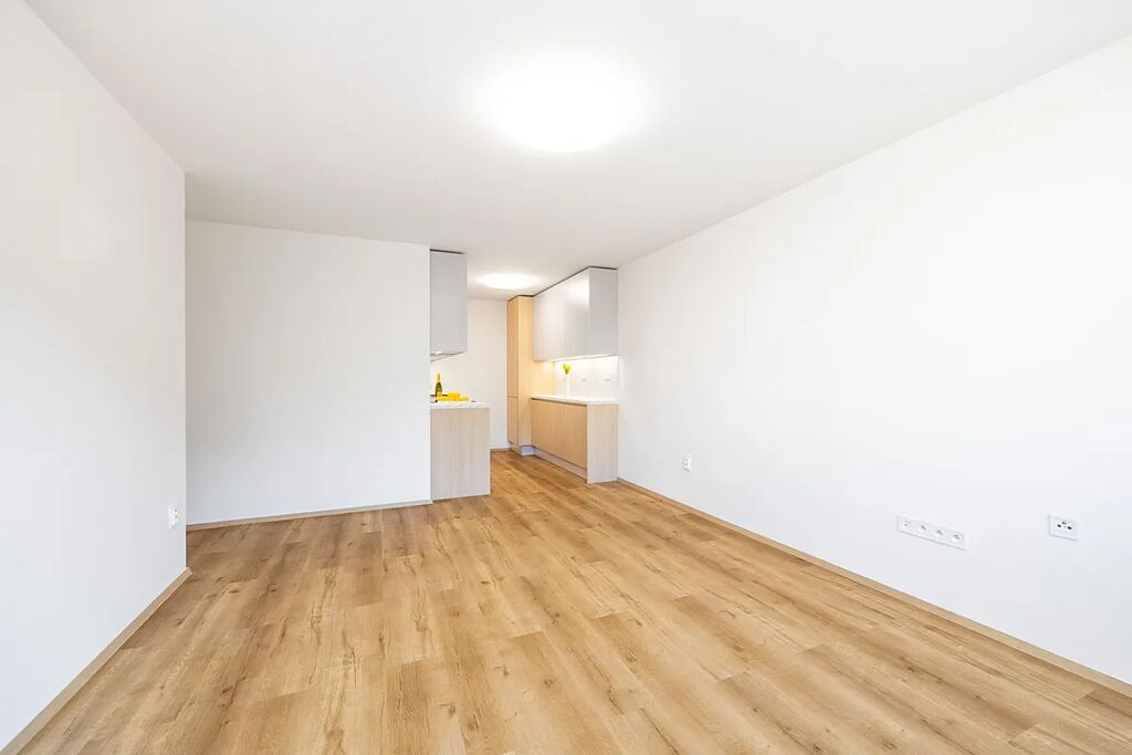 Byt vypadá přesně jak vidíte na fotografiích, nejedná se o vizualizaci. Kuchyně je vyrobena na míru a kompletně vybavená spotřebiči (elektrická trouba, indukční deska, myčka) a spolu s obývacím pokojem vytváří ideální společenský prostor. Prostorná koupelna s velokormátovými obklady je s vanou, sprchovou zástěnou a umyvadlovou skříňkou se dvěma zásuvkami. V bytě jsou dvě ložnice a také prostorná komora nebo šatna a samostatná toaleta.