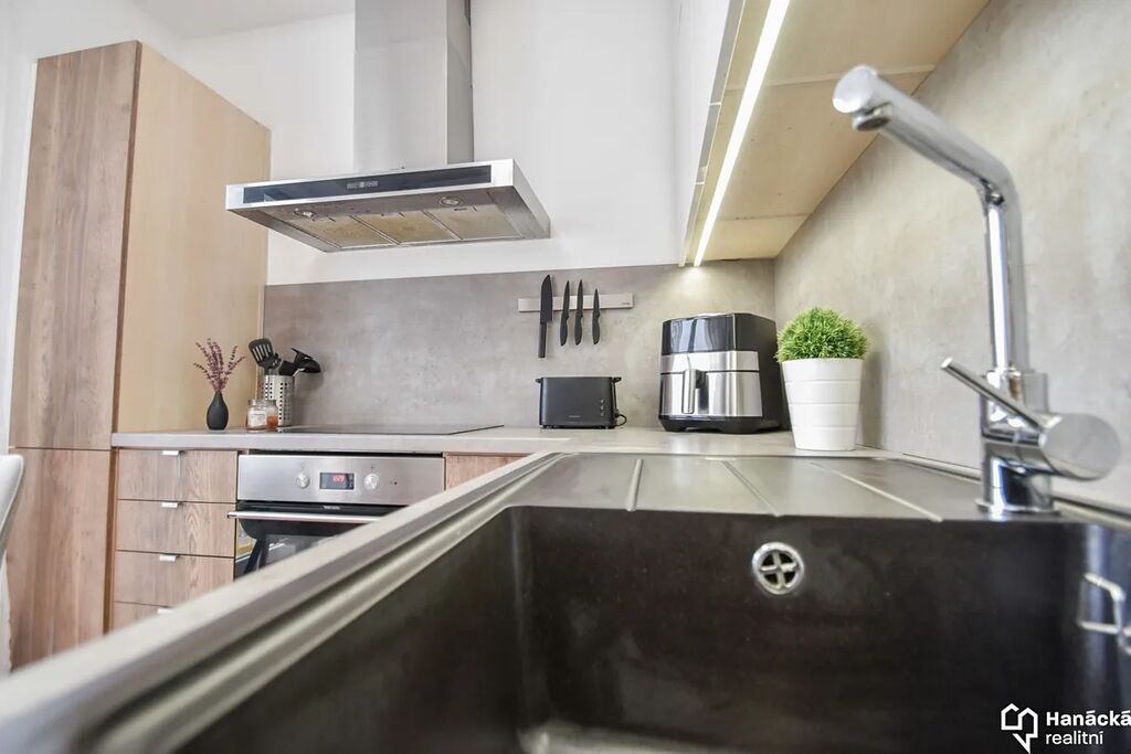 Součástí bytu je balkon orientovaný do klidného dvora, který nabízí příjemné soukromí. Interiér prošel rekonstrukcí a působí moderním, čistým a velmi dobře udržovaným dojmem. K dispozici je kompletně vybavená kuchyň se všemi spotřebiči a v bytě zůstává také pračka se sušičkou. Výhodou jsou i vestavěné šatní skříně, které poskytují dostatek úložného prostoru.