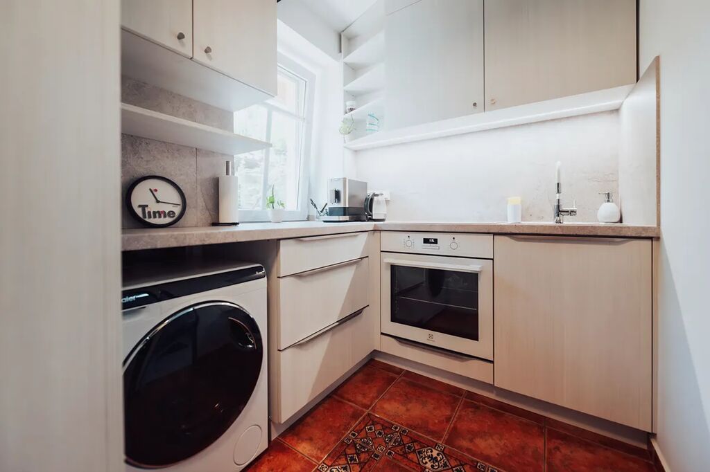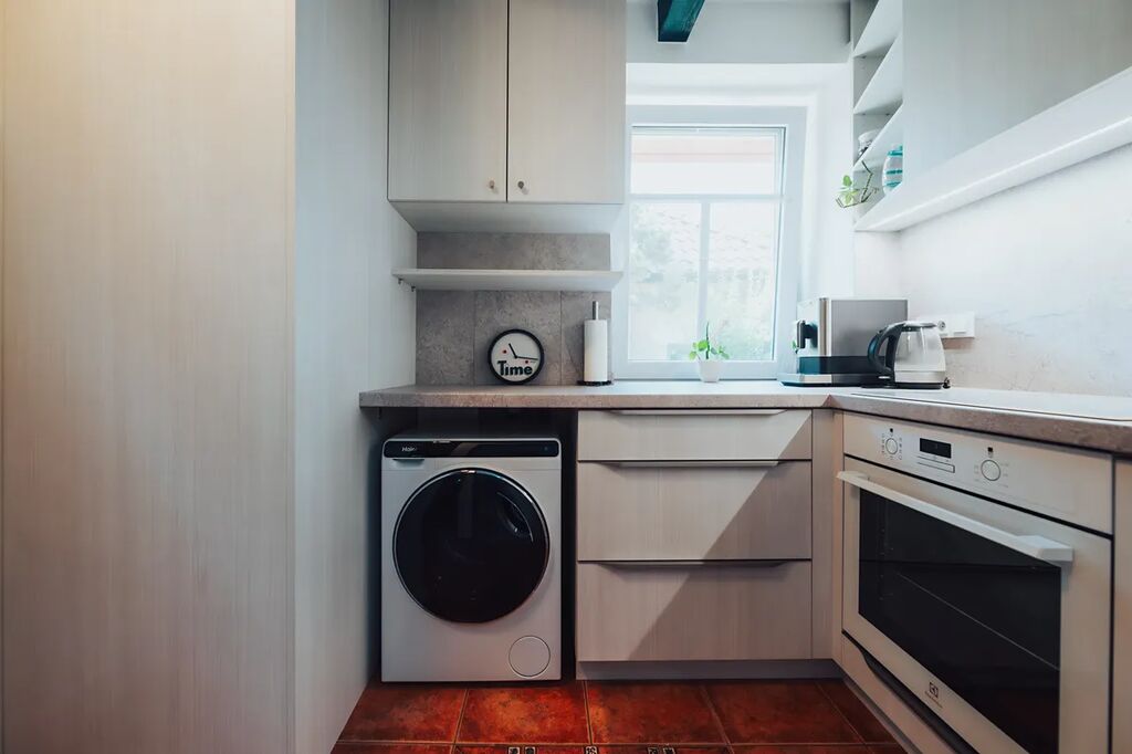 2025: nová kuchyňská linka se spotřebiči (indukční deska a trouba Electrolux, pračka Haier), kompletně zrekonstruované zádveří a koupelna, optické internetové připojení.