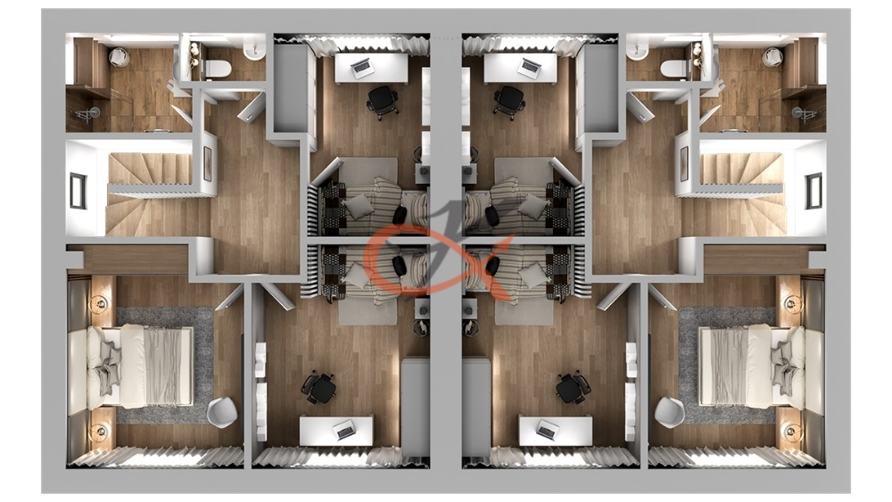 Prodej řadového rodinného domu o zastavěné ploše 84m2 s pozemkem včetně zastavěné plochy 195m2, RD 05. Jedná se o dvoupodlažní skeletový dům o dispozici 4+kk , celková užitná plocha 116,3m2. Dům je situován na ulici Holešovská v nově vznikající lokalitě. V první fázi bude postaveno jedenáct rodinným domů, následně výstavba dalších šesti domů. V přízemí domu se nachází vstupní chodba, centrální chodba se schodištěm do patra domu, koupelna s vanou, samostatná toaleta, obývací pokoj propojený s kuchyní o výměře 34,8m2, z obývacího pokoje je vstup na venkovní terasu, pod schodištěm je komora. V patře domu jsou tři prostorné pokoje, dva o velikosti 16m2 a jeden 12m2, koupelna se sprchovým koutem, samostatná toaleta, prostorná chodba. V domě bude elektrické podlahové vytápění, příprava pro instalaci krbových kamen a vývod pro externí komín. Střešní krytina - plechové šablony, okna plastová trojskla, podlahy linoleum, vnitřní dveře včetně obložek, bojler pro ohřev teplé vody, koupelny budou vybaveny obklady, dlažbou a veškerou sanitou. Příjezd k domu bude řešen zámkovou dlažbou, což umožní vznik parkovacích stání podél domu. Dům bude napojen na veřejný vodovodní řád a kanalizaci, přístup bude zajištěn z obecní komunikace. Dům se nachází přibližně 900m od centra Fryštáku a 8 km (cca 15 minut autem) od Zlína. Dům je ve výstavbě, jeho dokončení je plánováno v prvním kvartálu roku 2026.