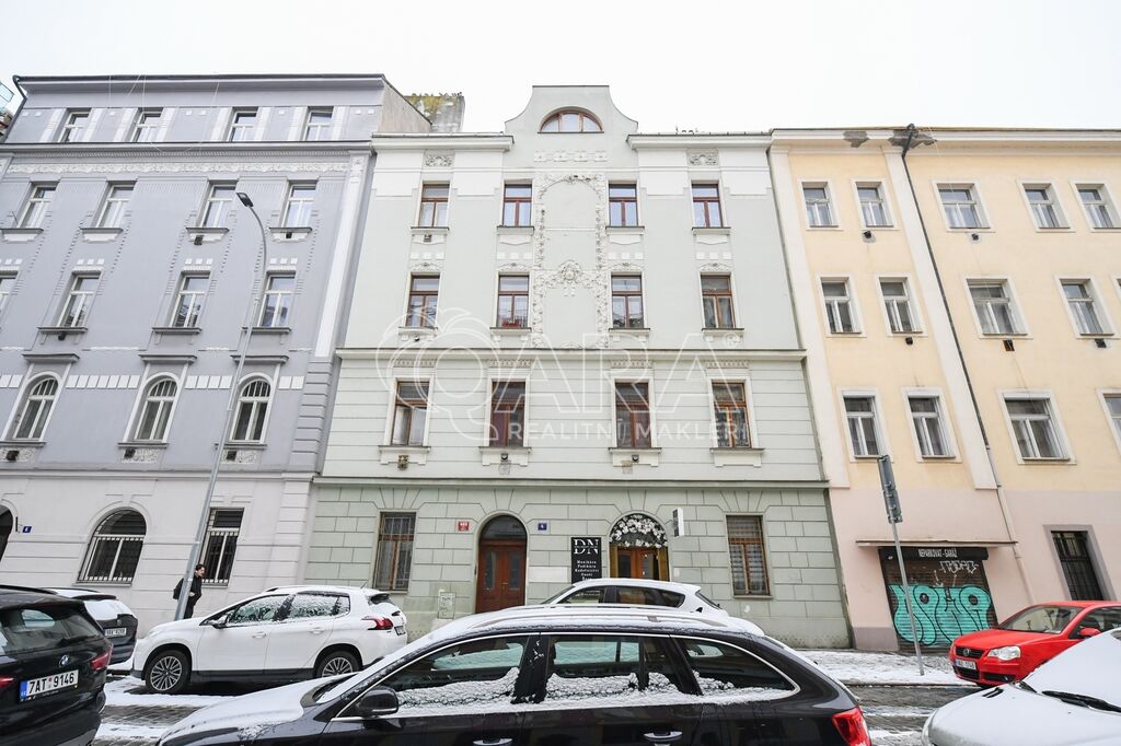 Exkluzivní nabídka pronájmu bytu 2+kk (44m2) ve druhém patře cihlového domu bez výtahu v šiřším centru Prahy, kousek od Výtoně, náplavky či Karlova náměstí. Byt na adrese Oldřichova 4 je zařízen pouze kuchyňskou linkou, na mezipatře je k dispozici balkon pouze k tomuto bytu. Ložnice je orientovaná do klidného vnitrobloku, obývací pokoj k kuchyňským koutem do ulice Oldřichova.
