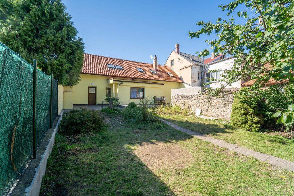 Za domem je prostorná terasa pro venkovní posezení a útulná zahrada společná pro oba byty v domě.