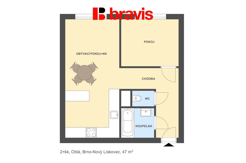 Ve výhradním zastoupení majitele nabízíme k pronájmu světlý byt 2+kk o celkové ploše 47 m2. Byt je umístěný ve 2. nadzemním podlaží domu s výtahem v klidné a oblíbené části Brna–Nový Lískovec, na ulici Oblá.