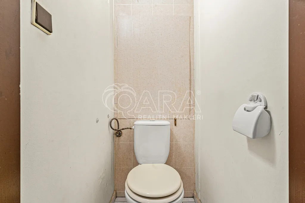 Dispozice bytu je velmi praktická – všechny místnosti jsou přístupné z centrální chodby, což zajišťuje dostatek soukromí i pohodlí. Obývací pokoj s orientací do zeleně má vstup na zasklenou lodžii, která nabízí příjemné posezení s výhledem do klidného vnitrobloku (západní strana). Kuchyň je funkční a připravená na modernizaci podle představ nového majitele (jižní strana). Tři další pokoje mohou sloužit jako ložnice, dětské pokoje nebo pracovna (2x východní, 1x západní orientace). Koupelna a toaleta jsou oddělené, což ocení zejména rodiny s dětmi. Úprava koupelny z roku 2011, použity koupelnové panely ABITIBI na původní jádro.