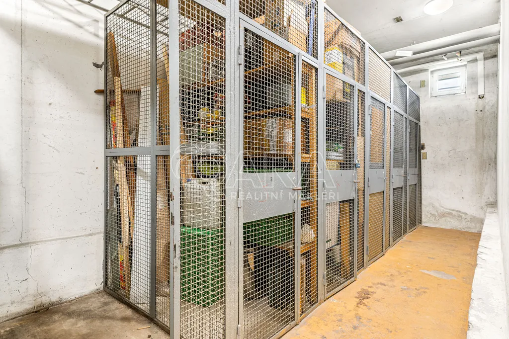 K bytu náleží dva sklepy (celkem 3m²). V domě je k dispozici také kočárkárna a kolárna. Dům samotný prošel zateplením i obnovou společných prostor a působí velmi udržovaně.