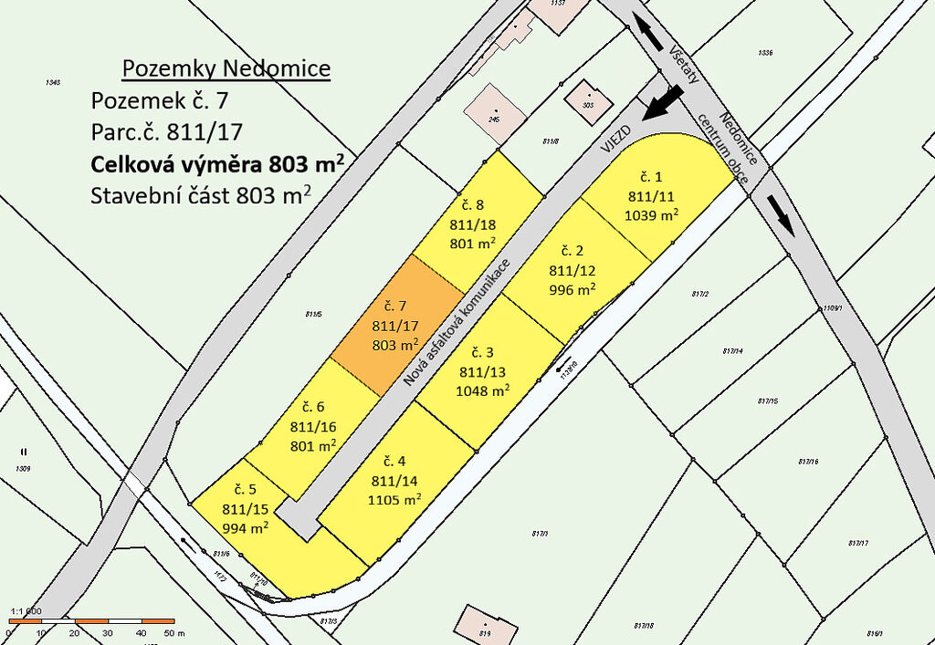 Stavební plocha 803 m² (celý pozemek je stavební).