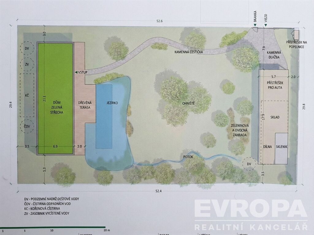 Připravenost k výstavbě: K dispozici je schválený projekt na bungalov (148 m²) a doplňkovou stavbu/zázemí s garáží (102 m²). Ušetříte tak čas i peníze za projektovou dokumentaci a povolovací procesy.