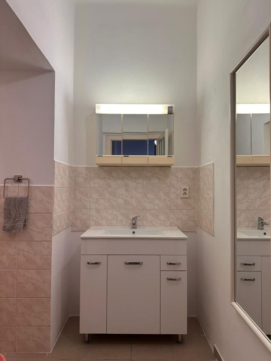 Po vstupu do bytu vás uvítá prostorná chodba, která vede do velkorysého obývacího pokoje s kuchyňským koutem. Ložnice je oddělená a moderně zařízená, vybavená dvěma pohodlnými lůžky, což nabízí dostatek soukromí i možnost spolubydlení. Koupelna se sprchovým koutem je společná s toaletou a působí čistým a funkčním dojmem. Byt je kompletně zařízen a vybaven vším, co je potřeba k okamžitému a pohodlnému bydlení.