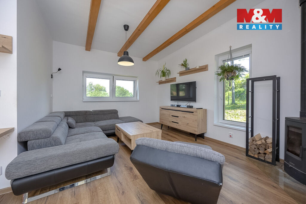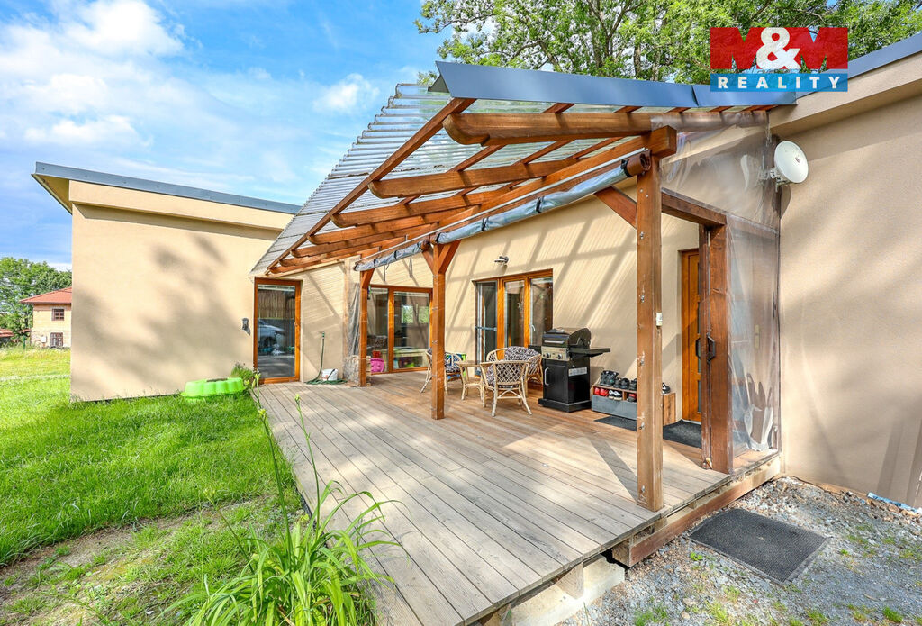 Na prosluněném pozemku o velikosti 1 831 m² stojí dům s 99 m² dokonale promyšlené dispozice a navíc s 30m² terasou, kterou díky možnosti zazimování využijete po celý rok. Dvě koupelny, světlý obývací prostor s kuchyní, dětský pokoj i útulná ložnice vytvářejí harmonické a praktické bydlení. Samostatná garáž a připravené základy pro přírodní jezírko jsou příjemnými bonusy.