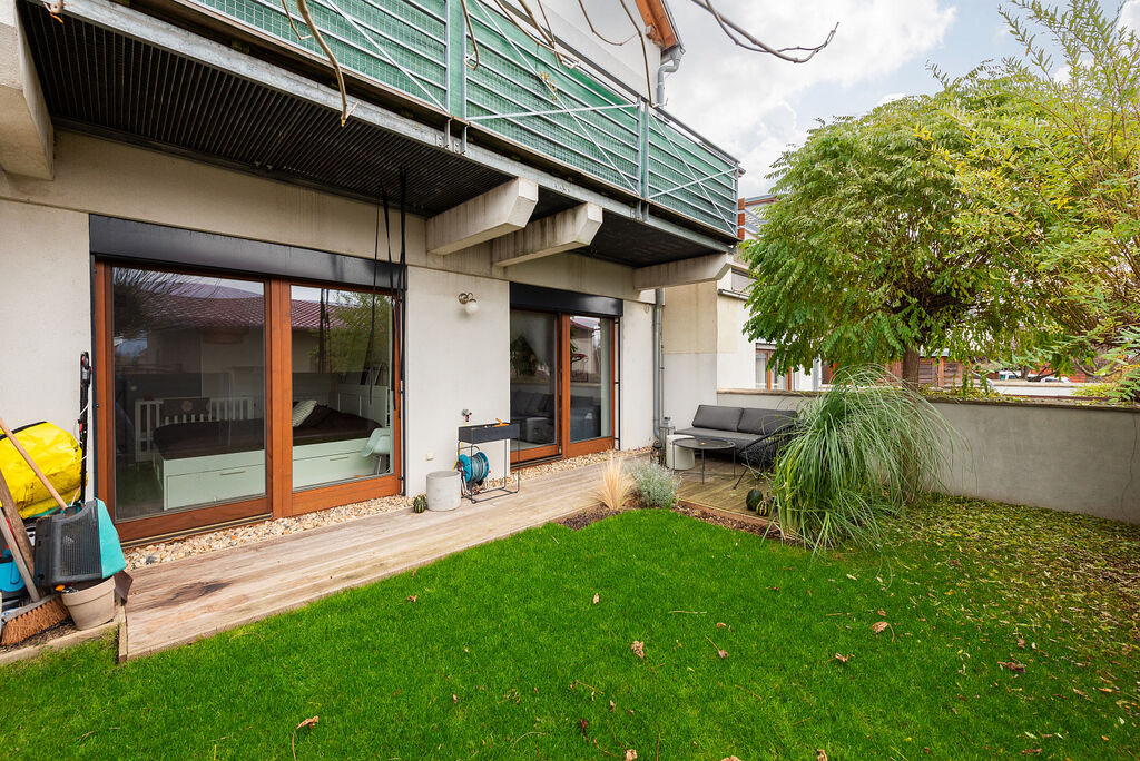 Byt se nachází v moderním nízkoenergetickém projektu z roku 2011 a nabízí příjemné a klidné bydlení v těsné blízkosti Prahy. Oba pokoje mají přímý vstup na jižně orientovanou zahradu s terasou ze sibiřského modřínu, která poskytuje soukromí a celodenní slunce. Součástí bytu je útulná ložnice a prostorný obývací pokoj s kuchyňským koutem. Byt má dřevěná okna s dvojskly, předokenní žaluzie Somfy s dálkovým ovládáním, podlahové konvektory Minib a kombinaci laminátových podlah a dlažby. Díky plynovému vytápění jsou provozní náklady velmi nízké.