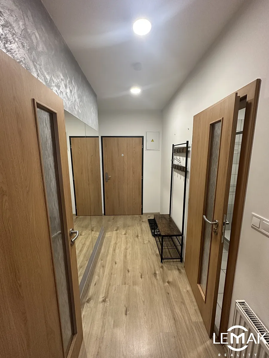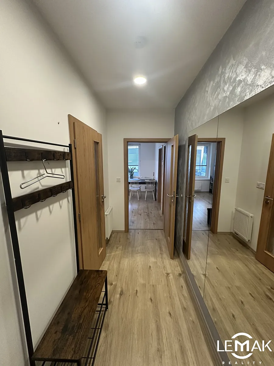 Po vstupu do bytu vás přivítá prostorná vstupní chodba, která plynule navazuje na samostatnou kuchyň s jídelním koutem a výhledem na terasu. Byt dále nabízí neprůchozí ložnici a útulný obývací pokoj se vstupem na terasu o rozloze 9 m².