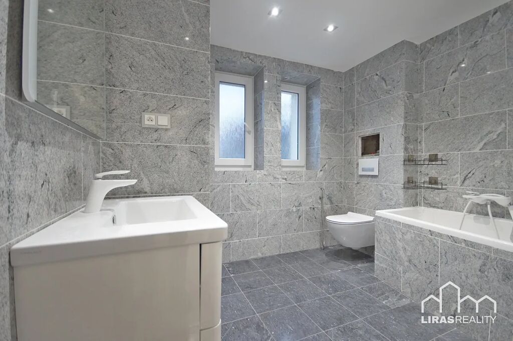 Pronájem bytu 2+1, 51m2, po kompletní rekonstrukci, situovaný ve zvýšeném přízemí domu v klidné ulici Budovatelů v Roudnici nad Labem. Dům je po rekonstrukci, která se dotkla především zateplené fasády, nových vstupních dveří, zateplení stropu sklepních prostor a nové střechy. Samotný byt se skládá z ložnice, obývacího pokoje, kuchyně, koupelny, komory a vstupní chodby, kde umístěna vestavěná skříň. K bytu dále náleží sklep. V bytě jsou bezpečnostní dveře, plastová okna a část zařízení jako jídelní kout a lednice a plně zařízená kuchyňská linka včetně myčky. Byt je po vymalování ihned k nastěhování. Nemovitost se nachází v klidné lokalitě s veškerou občanskou vybaveností. U domu jsou školky, školy, v docházkové vzdálenosti je centrum obce i nákupní retail park. Volné ihned. Nájemné 16 900 Kč + zálohy na vodu 650 Kč + zálohy na elektřinu cca 2 500,-Kč. Pro více informací volejte makléře nemovitosti.