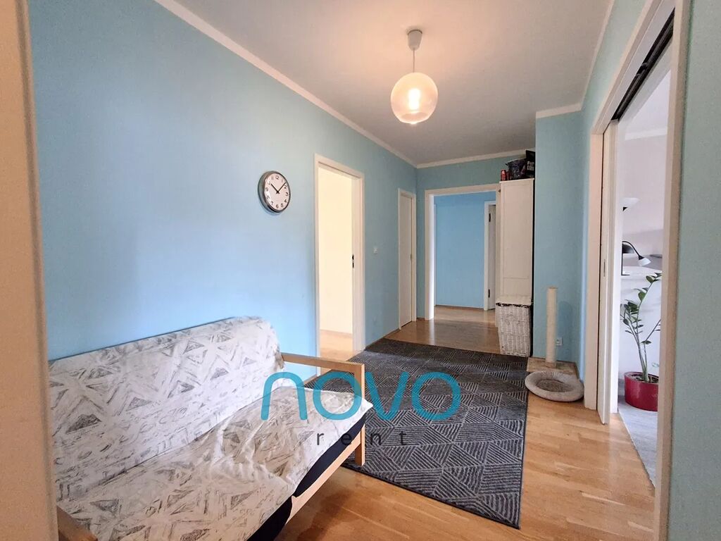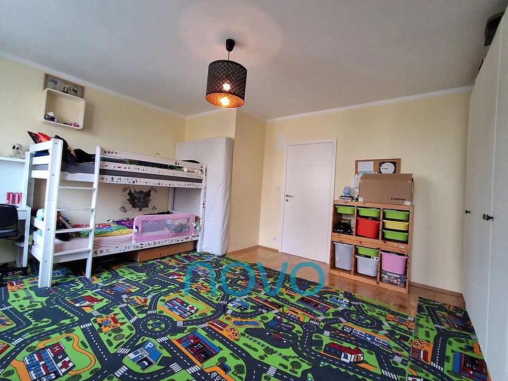 Po vstupu do bytu máte k dispozici předsíň vedoucí do komory s oknem vybavené velkou skříní. Dále pak se chodbou dostanete do obývacího pokoje, ze kterého můžete vyjít na lodžii, která je dlouhá přes celý byt. Naproti obývacímu pokoji je další místnost nyní využívaná jako dětský pokoj. Dále se chodbou můžete jít do další z prostorných místností tohoto bytu a to ložnice nebo můžete jít do kuchyně kam se pohodlně vejde jídelní stůl pro celou rodinu. Byt má ještě další menší komoru a 2x WC.