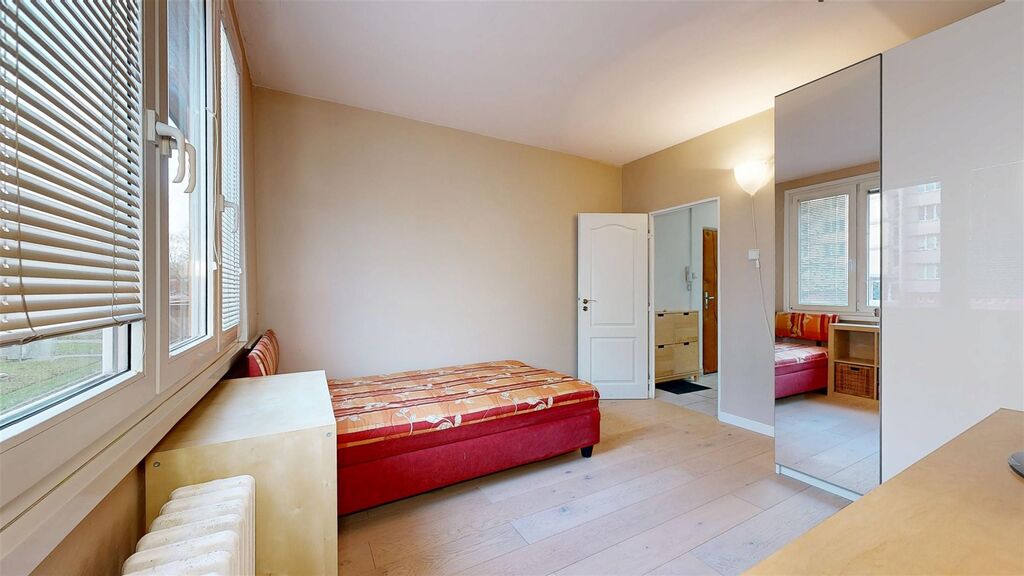 Byt je kuchyní a pokojem orientován k jihozápadu, je tedy velmi světlý a poskytuje velmi pěkný výhled. V bytě je zděné jádro, nová koupelna se sprchovým koutem a pračkou, plastová okna, na podlahách dlažba a v pokojích dřevo, kuchyňská linka zánovní. V bytě je několik praktických a také zánovních kusů vybavení, které by mohlo přijít vhod potenciálním nájemníkům viz fotografie. Dům je zateplený, má nová stoupací vedení i výtah, je úsporný, velmi dobře udržovaný a spravovaný. V bytě je praktická šatna, k bytu patří dále komora v mezipatře, sklepní kóje a užívání malého balkonu také v mezipatře.