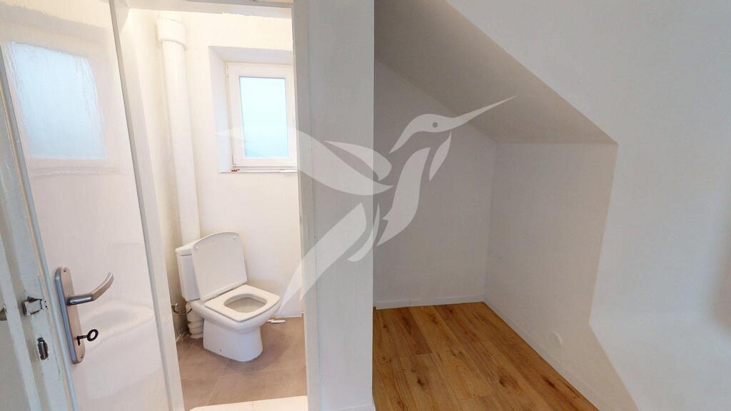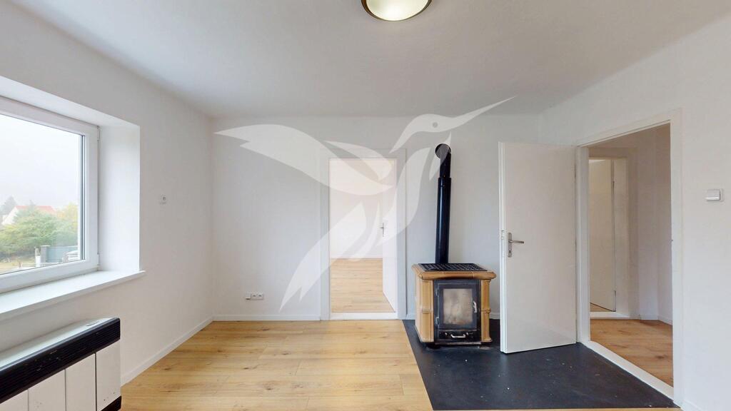 Byt se nabízí nezařízený, součástí je kuchyňská linka, kombinovaný sporák, krbová kamna.