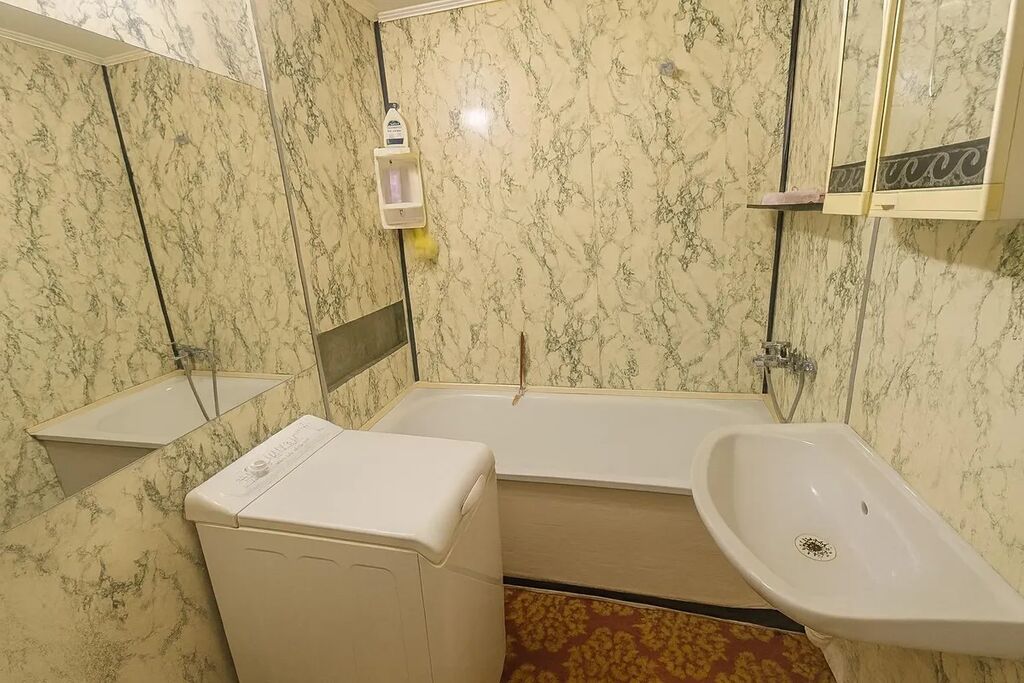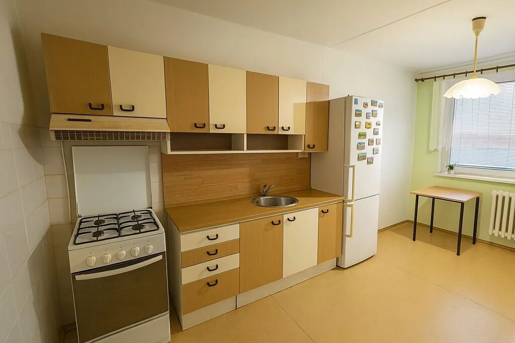 V kuchyni je kuchyňská linka s plynovým sporákem. V koupelně je vana a umyvadlo, WC je odděleno.