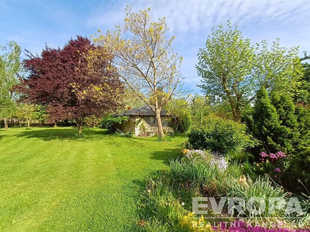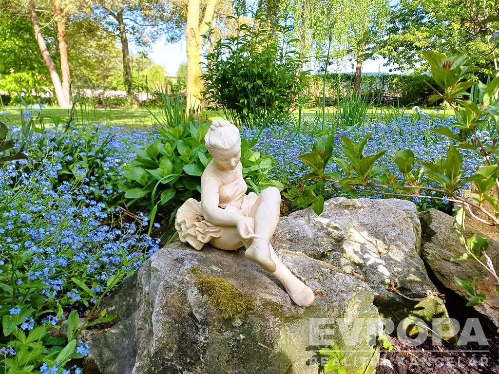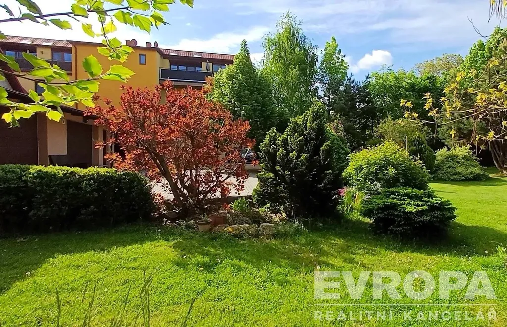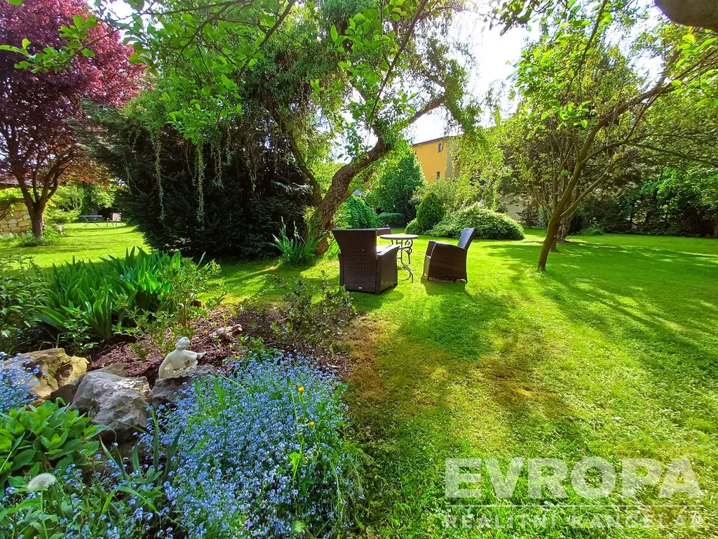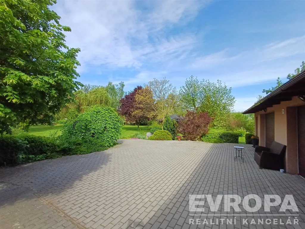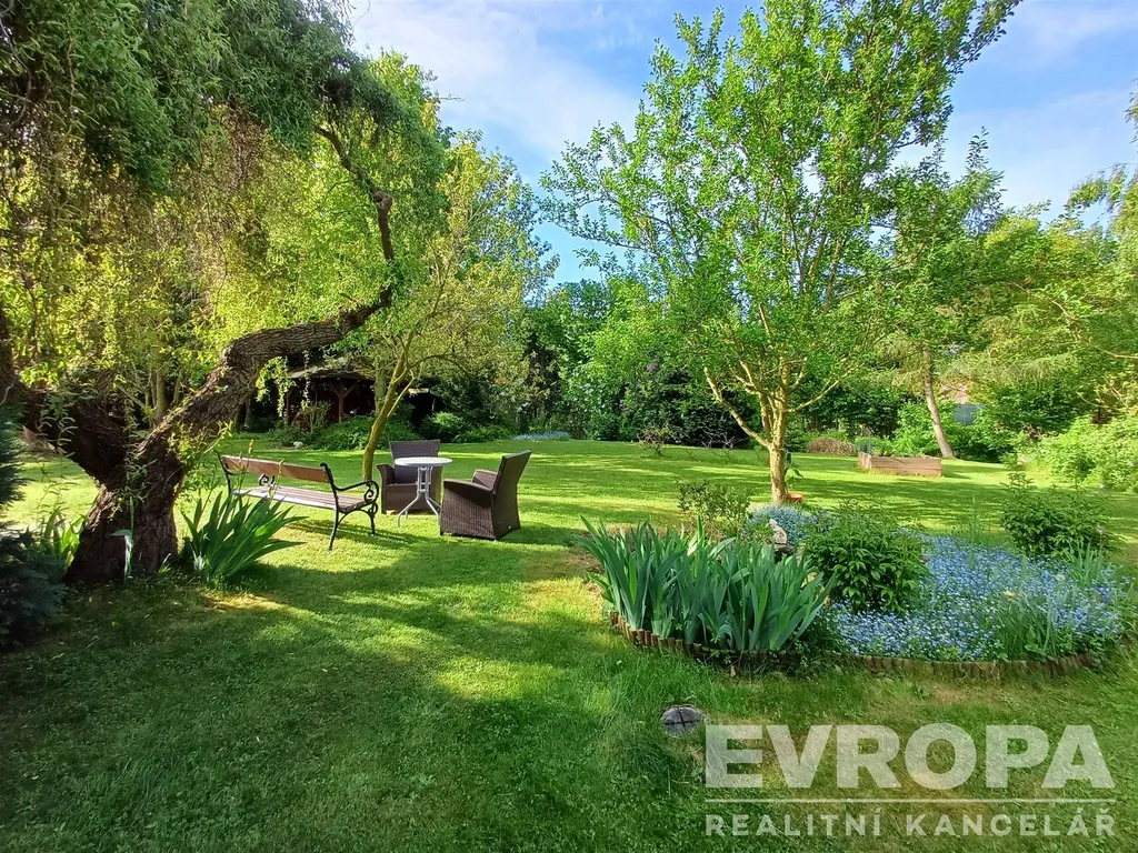 Rozloha pozemku je 3 665 m², z toho zastavěná plocha 334 m². Prostorná okrasná zahrada je oddělena uzavřenou automatickou bránou. Menší část prostranství je situována před budovou, oddělena od komunikace automatickou závorou, a je ideální jako parkování pro zákazníky a pro venkovní posezení (cukrárna), čímž je zajištěna komerční viditelnost. Udržovaná okrasná zahrada přidává nemovitosti půvab, soukromí a poskytuje odpočinkové zázemí, dominují zde vzrostlé okrasné dřeviny (nádherný platan, břízy, jehličnany), skrývá také unikátní prvek protéká jí potůček vytvářející uklidňující atmosféru, k relaxaci a setkávání slouží útulný zahradní altán. Balkóny umožňují obyvatelům vychutnávat si klidné okamžiky s panoramatickými výhledy na údolí řeky Berounky a na obzory Chráněné krajinné oblasti Český kras.